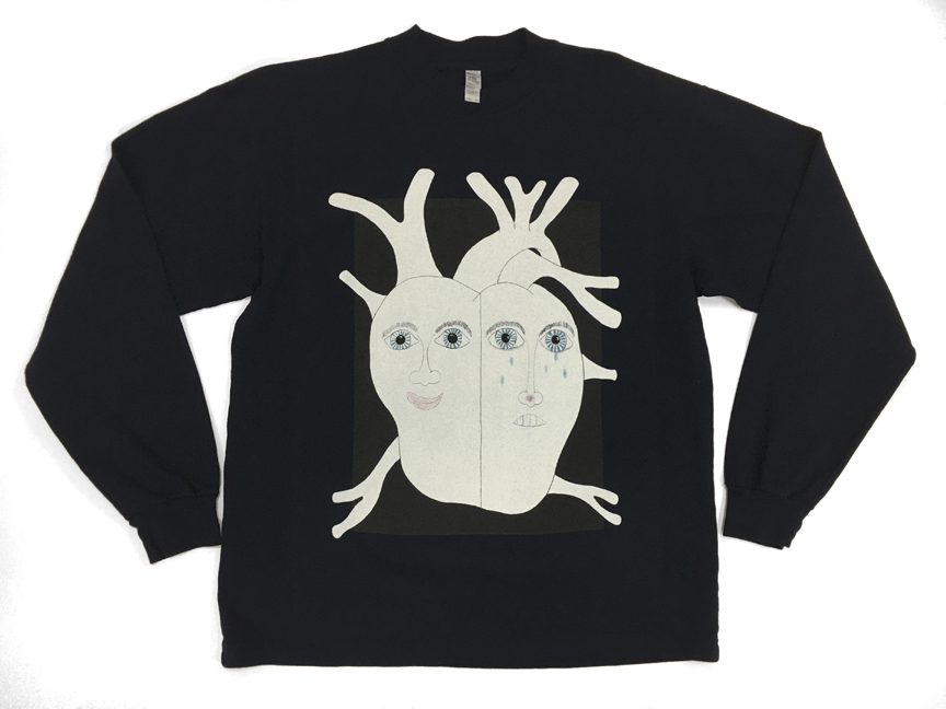 $80 ︎Max intuitively knew his childhood was nice and terrible as it unfolded. Thus, at the age of 11, he made a drawing for his grade school anatomy project that reflected this predicament. Now, it is on a shirt for all to enjoy. 100% cotton. Made in Los Angeles.